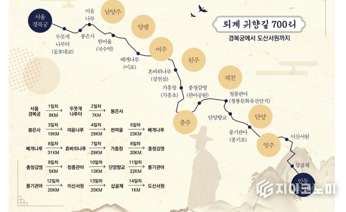 1569년(선조 2년) 퇴계 이황 선생이 69세의 노구를 이끌고 서울 경복궁에서 안동 도산서원까지 걸었던 700리의 귀향 여정을 가졌다. 당시 퇴계 이황 선생의 귀향은 흔히 ‘관직을 버린 선택’이라 평가받지만, 그 본질은 조금 다르다. 단순한 은퇴가 아니라, 삶의 방향을 ‘중앙’에서 ‘지역’으로 옮긴 결단이었다.
