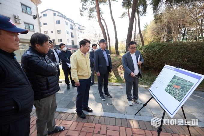 먼저 방문한 장재리 공영주차장은 기존 지산체육공원 부지 일부(3,096㎡)를 활용해 약 100면 규모의 노외주차장을 조성하는 사업이다. 공원 내 별도 주차장이 없는 상황에서 시유지를 활용해 추가 토지매입비 없이 추진할 수 있다는 점이 장점으로 꼽힌다.