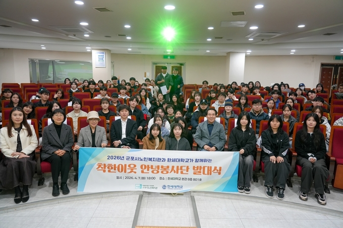 한세대학교(총장 백인자) 사회봉사센터는 군포시노인복지관과 협력하여 지난 7일 교내 본관에서 ‘2026년 착한이웃 안녕봉사단 발대식’을 열고 본격적인 활동에 나섰다고 8일 밝혔다. 이번 봉사단은 사회복지학, 간호학, 경찰행정학, 자유전공학부 등 다양한 전공의 학생 100여 명으로 구성됐다.