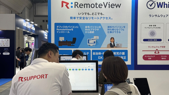알서포트 부스에는 행사 첫날에만 1,000명 이상의 관람객이 몰리며 문전성시를 이뤘다. 관람객들은 일본 클라우드 원격제어 시장 점유율 1위 제품인 ‘리모트뷰(RemoteView)’의 보안성에 주목했다.