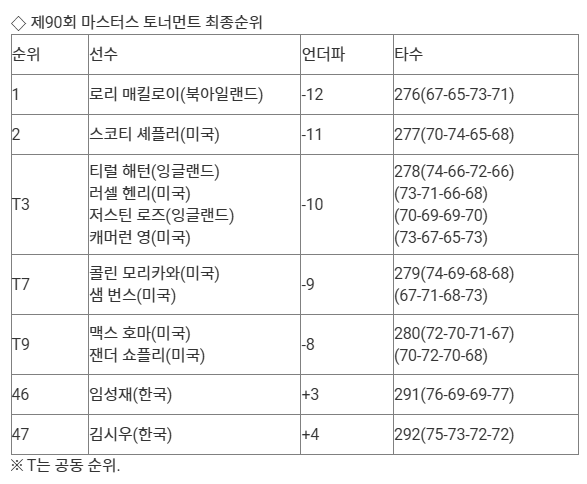 맥길로이는 13일(한국 시간) 미국 조지아주 오거스타의 오거스타 내셔널 골프클럽(파72)에서 열린 제90회 마스터스 4라운드에서 버디 5개, 보기 2개, 더블 보기 1개로 1언더파 71타를 쳤다.