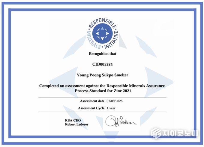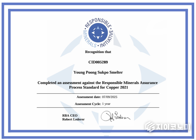 영풍은 이미 사전 단계에서도 글로벌 수준의 공급망 관리 역량을 입증한 바 있다. 지난해 실시된 RRA 3.0 평가에서 거버넌스·환경·사회 전반에서 높은 점수를 기록했고, 2021년에는 제련소 업계 최초로 폐수 무방류 시스템을 도입하며 환경 투자도 확대해왔다.