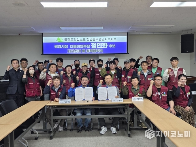 지이코노미 김정훈 기자 | 전남동부·경남서부 플랜트건설노동조합이 정인화 광양시장 예비후보와 정책 협약을 맺고 협력에 나섰다.