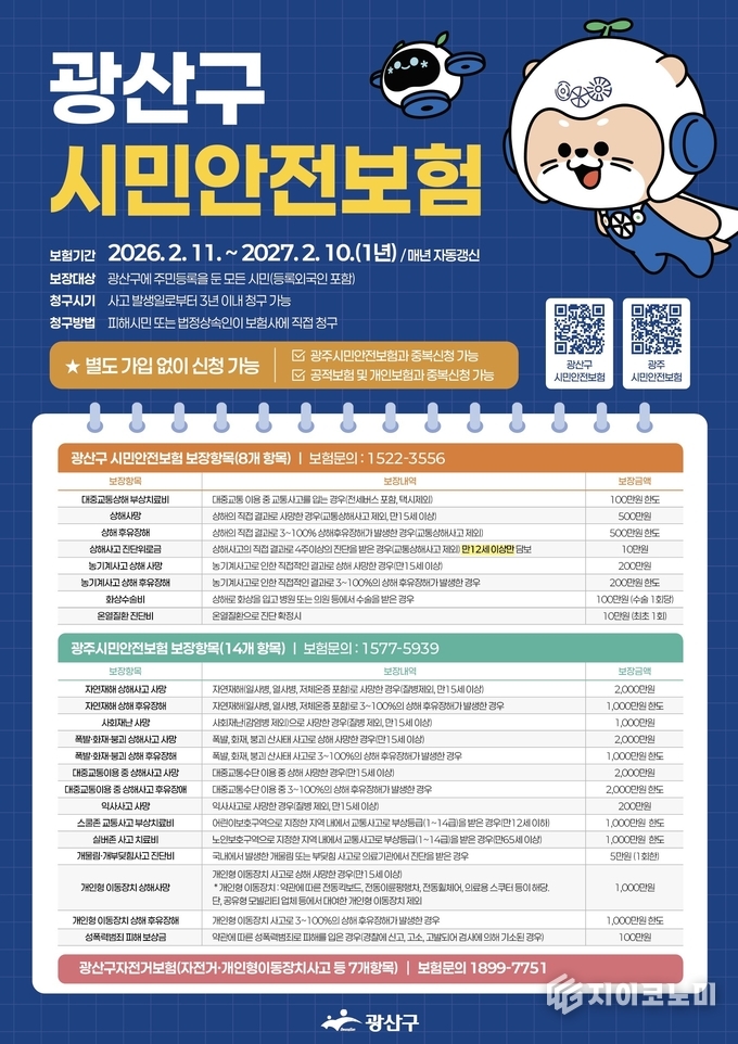 이 보험은 광산구에 주민등록을 둔 주민과 등록 외국인이 별도 절차 없이 자동 가입되며, 보험료는 전액 구가 부담한다. 개인보험과 중복 청구도 가능하다.