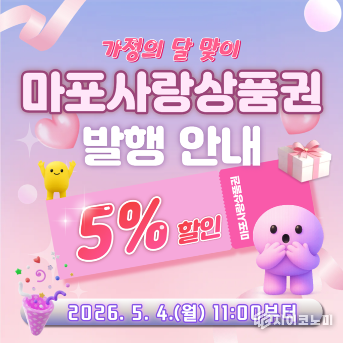 지이코노미 최영규 기자 | 마포구는 5월 가정의 달을 맞아 구민의 생활비 부담을 덜고 지역경제 활성화를 위해 100억 원 규모의 ‘마포사랑상품권’을 발행한다.