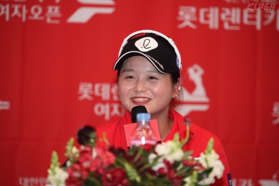 롯데 렌터카 여자 오픈 미디어 설명회에서 오지현이 기자들의 질문에 답변하고 있다