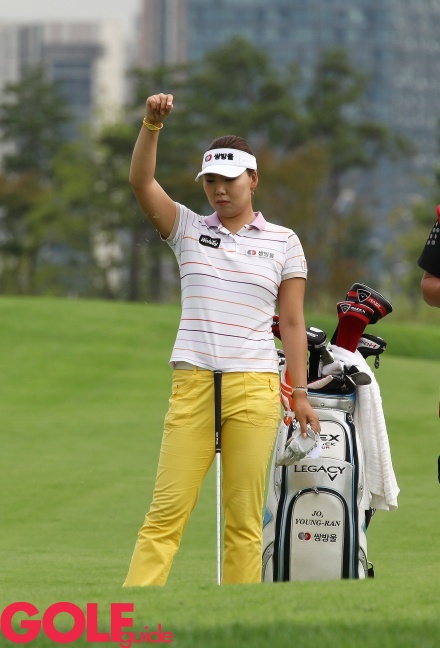 한국여자오픈 골프선수권대회 2라운드 7번홀에서 조영란이 잔디로 바람을 확인 하고 있다.