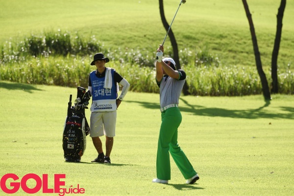 KPGA 선수권대회 2라운드 14번홀에서 김대현이 세컨 샷을 하고 있다.