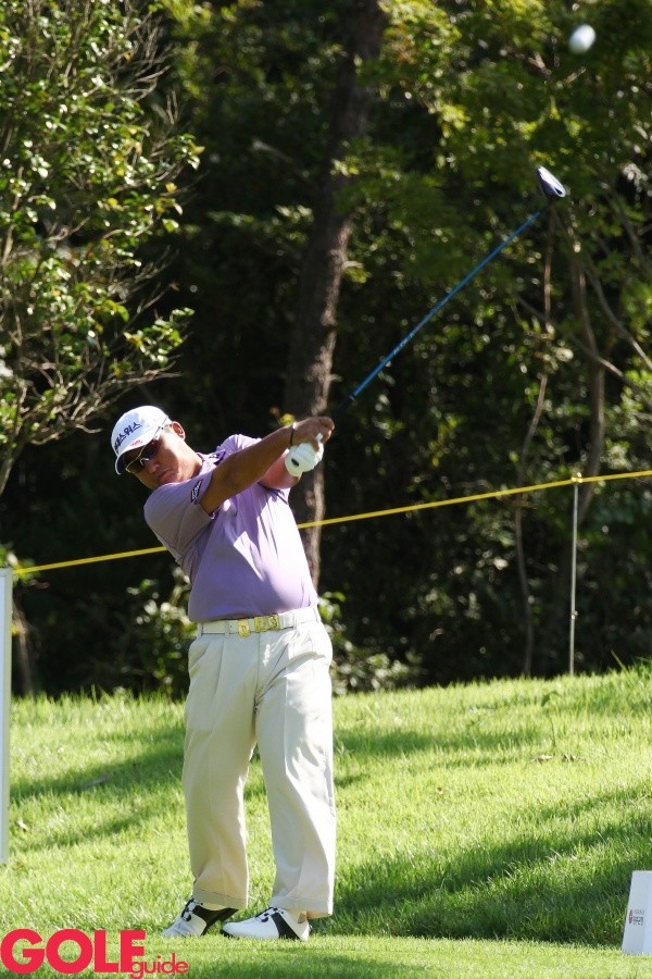 KPGA 선수권대회 2라운드 16번홀에서 모중경이 티샷을 하고 있다.