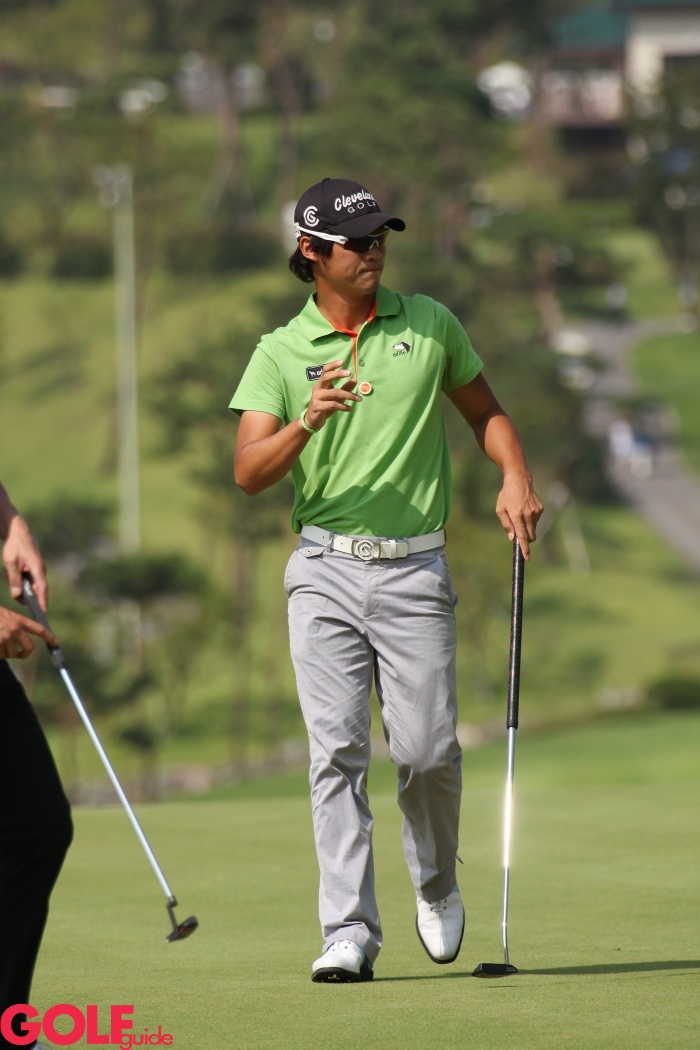 KPGA 선수권대회 2라운드 10번홀에서 마수길이 버디를 잡은후 팬들에게 인사 하고 있다. 마수길은 현재 11시 25분 8언더로 단독 선두로 달리고 있다.골프가이드 (나주) / 이배림 기자
