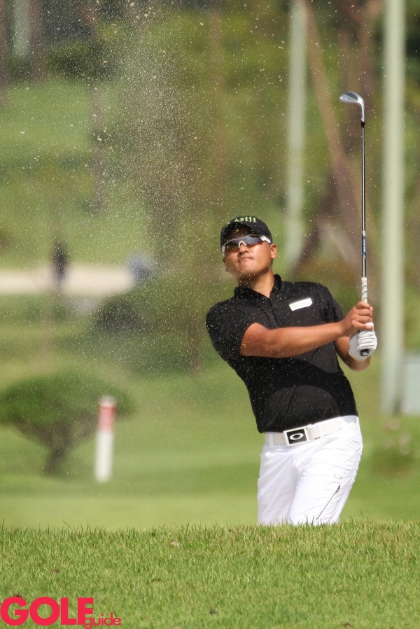 KPGA 선수권대회 2라운드 11번홀에서 김대섭이 벙커에 빠진공을 물이 솟아 오르듯 그린위로 빼내고 있다.