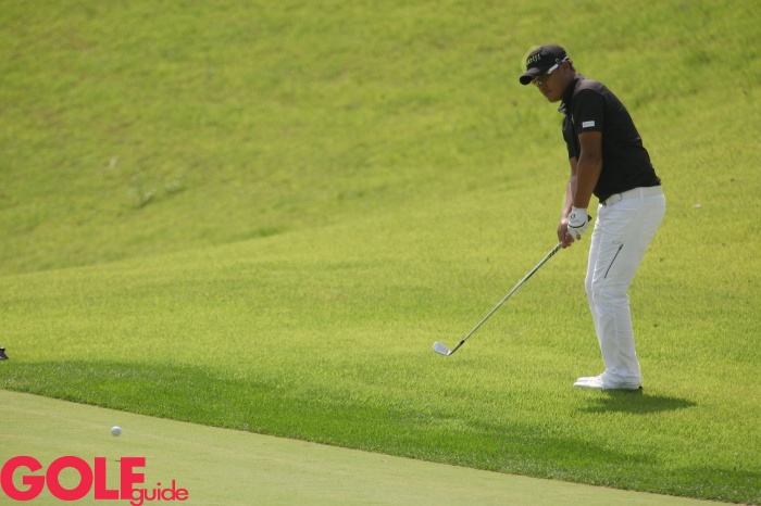 KPGA 선수권대회 2라운드 18번홀에서 김대섭이 어프로치를 하고 있다.