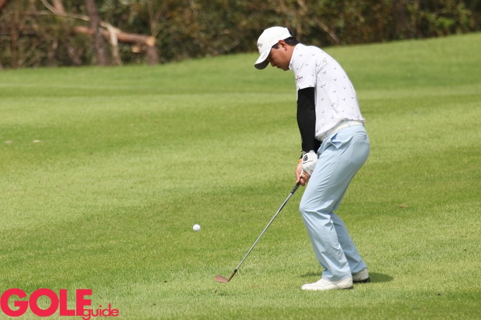 KPGA 선수권대회 2라운드 7번홀에서 김성용이 공을 그린위로 올리고 있다.