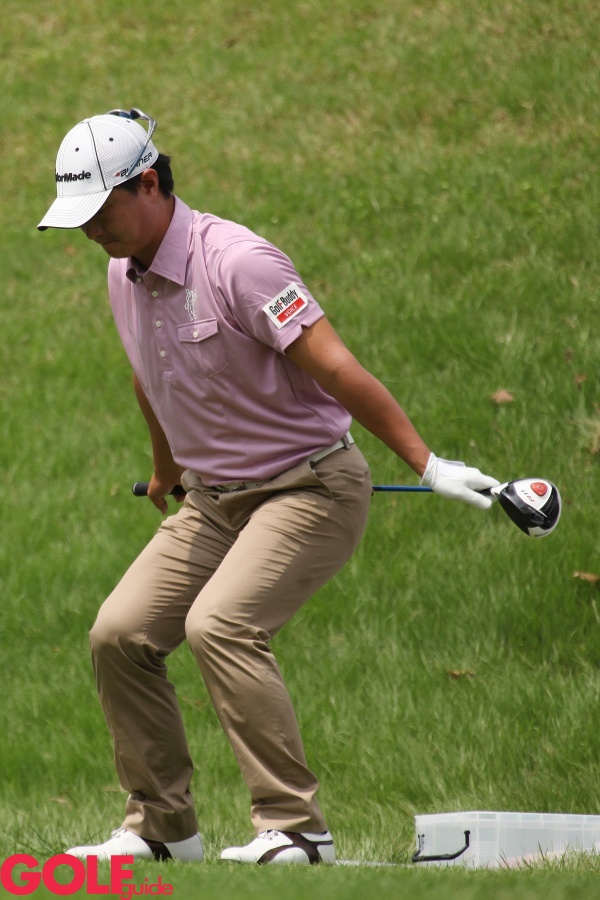 KPGA 선수권대회 3라운드 1번홀에서 황경남이 티오프 전 몸을 풀고 있다.