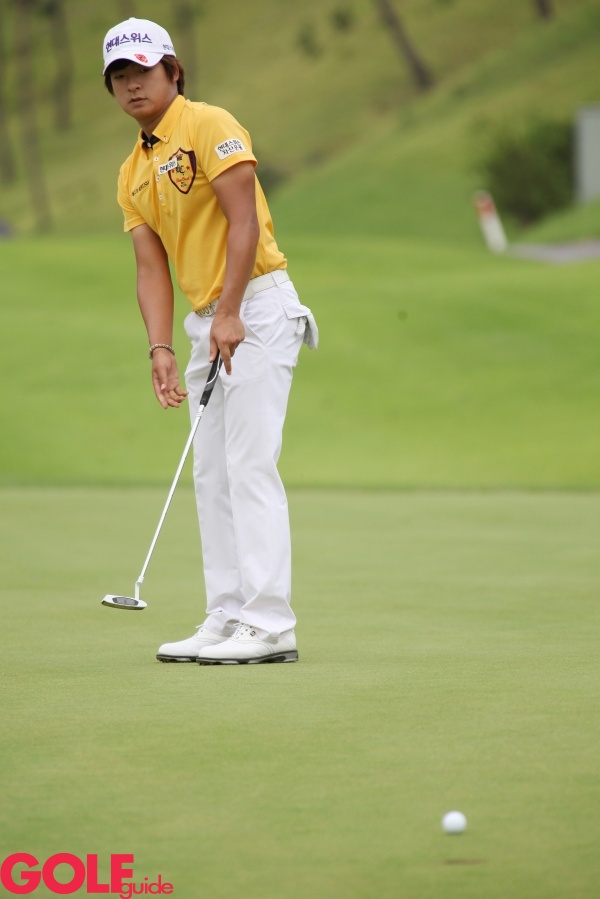 KPGA 선수권대회 3라운드 7번홀에서 김승혁이 아쉽게 버디를 놓치고 있다.