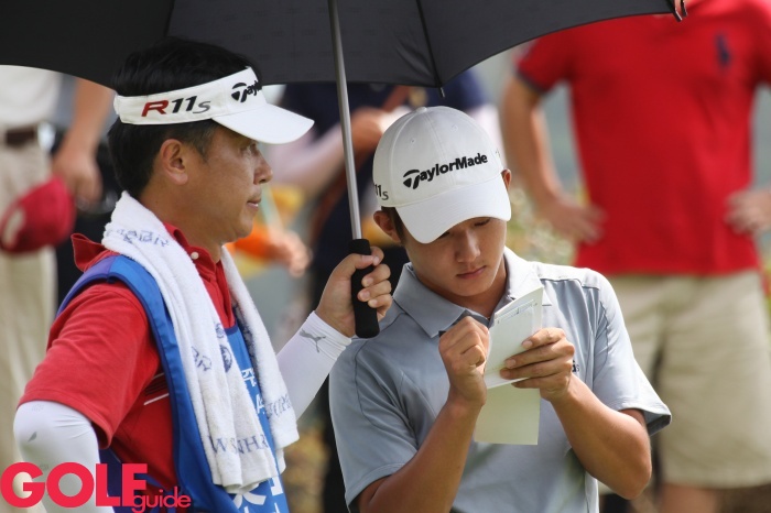 KPGA 선수권대회 3라운드 8번홀에서조민근이 기록을 체크 하고 있다.