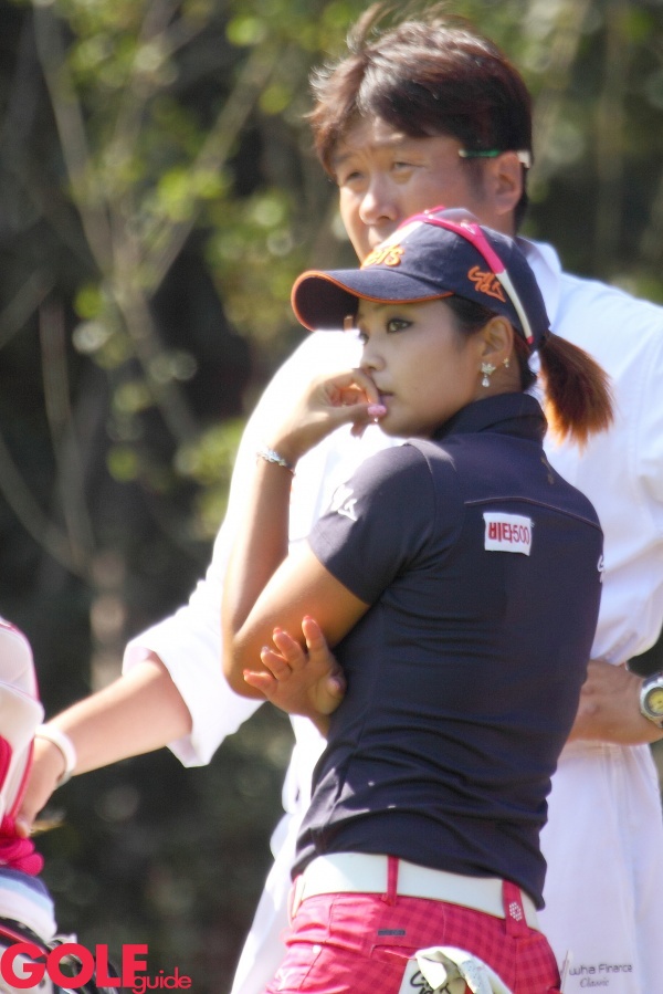 6일, 충남 태안의 골든베이CC (파72 / 6,564yd)에서 국내 역대 최고의 상금이 걸린 KLPGA 메이저대회인 `2012 한화 금융 클래식(총상금12억, 우승상금 3억)’ 이 막을 올렸다.1라운드 4번홀에서 양수진이 티샷을 하기전에 곰곰히 생각 하고 있다.