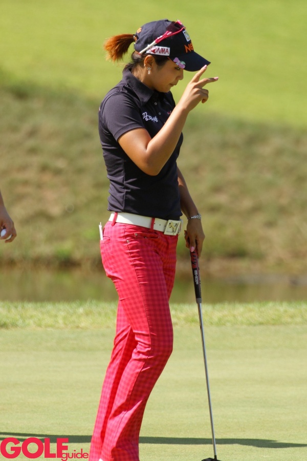 6일, 국내 역대 최고의 상금이 걸린 KLPGA 메이저대회 `2012 한화 금융 클래식(총상금12억, 우승상금 3억)’ 이 충남 태안의 골든베이CC (파72 / 6,564yd)에서 막을 올렸다. 대회 1라운드 4번홀에서 양수진이 갤러리의 박수에 보답하고자 인사하고 있다.