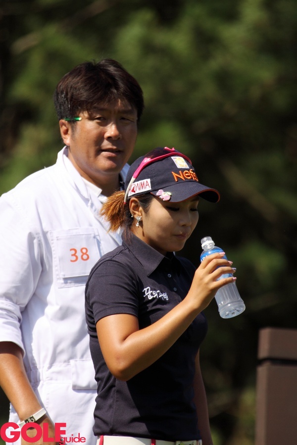 6일, 국내 역대 최고의 상금이 걸린 KLPGA 메이저대회 `2012 한화 금융 클래식(총상금12억, 우승상금 3억)’ 이 충남 태안의 골든베이CC (파72 / 6,564yd)에서 막을 올렸다.대회 1라운드 5번홀에서 양수진이 음료를 마시고 있다.