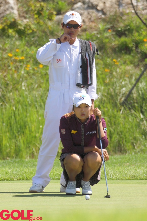 6일, 국내 역대 최고의 상금이 걸린 KLPGA 메이저대회 `2012 한화 금융 클래식(총상금12억, 우승상금 3억)’ 이 충남 태안의 골든베이CC (파72 / 6,564yd)에서 막을 올렸다. 대회 1라운드 9번홀에서 양제윤이 그린라이를 살피고 있다.