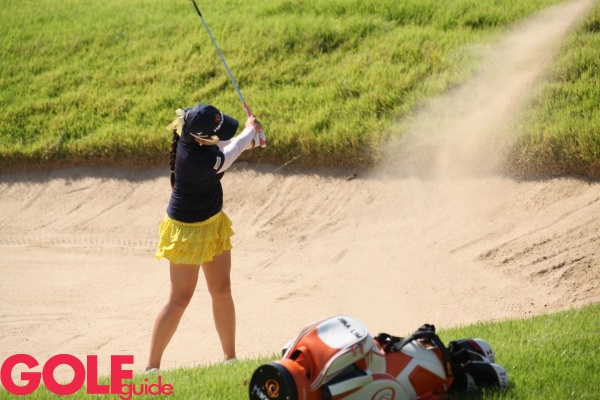 `2012 한화 금융 클래식` 대회 1라운드 18번홀에서 임자나가 벙커를 빠져 나오고 있다.