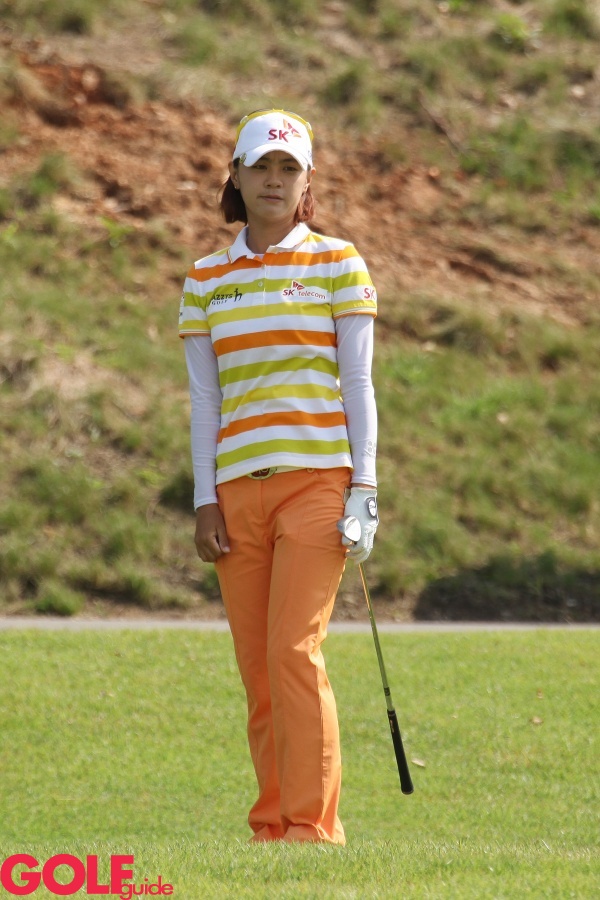 `2012 한화 금융 클래식` 대회 2라운드8번홀에서 최나연이 어프로치 샷을 시도하고 난 후 표정이다. 최나연은 8번홀(par3)에서 파를 기록했다.
