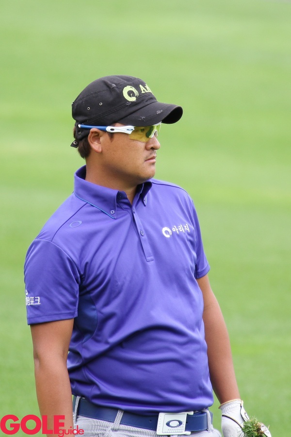 `2012 동부화재 프로미` 대회 3라운드 11번홀에서 김대섭이 세컨샷을 날린후 공을 보고 있다.