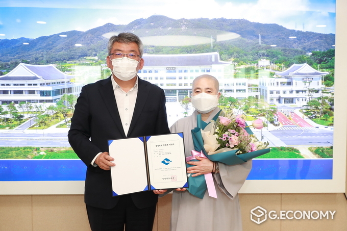 이날 명봉사 주지 희광스님에게 지정서를 직접 전달하고 문화재 지정을 축하하는 한편 우리 지역 불교문화유산의 가치를 되새기는 시간도 가졌다.
