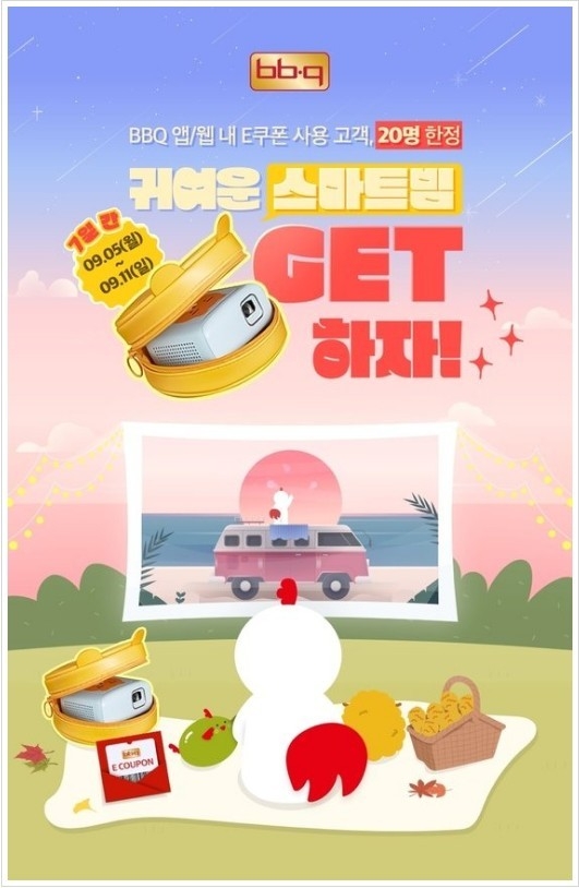 9월 11일까지 E-쿠폰 사용 고객을 대상으로 경품 추첨을 통해 20명을 선정하여 40만원 상당의 빔 프로젝터를 증정한다. 증정되는 빔 프로젝터는 '삼성 라이언 스마트 빔'으로 카카오프렌즈 캐릭터가 그려진 사랑스러운 디자인과 휴대성이 좋아 '홈캉스 필수템'으로 불리는 인기 모델 중 하나 이다.