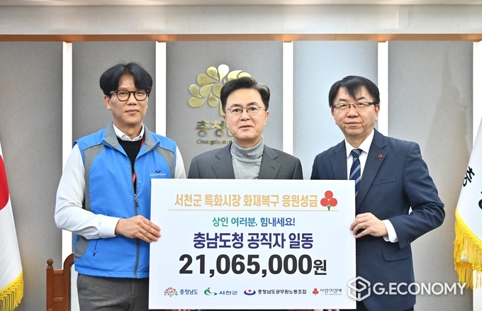 지이코노미 정길종 기자 | 충청남도(김태흠 지사)는 14일 도청 접견실에서 충청남도공무원노동조합으로부터 서천특화시장 대형 화재 피해 복구 지원 성금 2106만 5000원을 전달받았다.