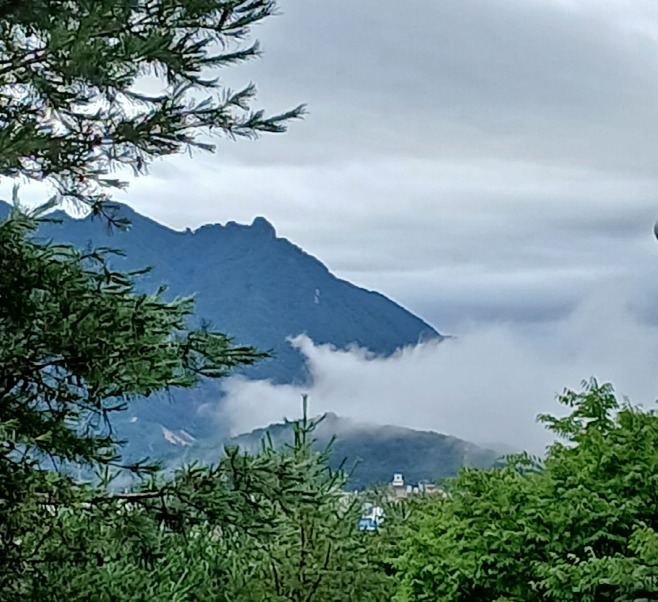 태봉골프연습장에서 바라본 명성산의 산줄기. 산 아래 구름이 깔려 있어 신비한 느낌을 준다