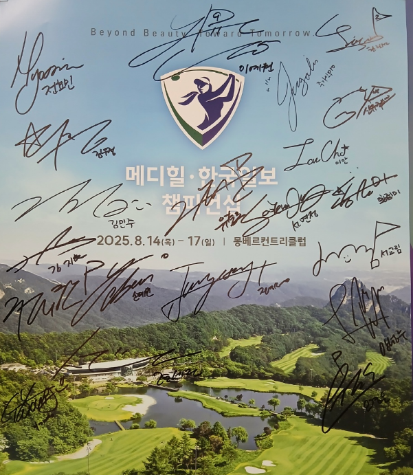 연습장에 온 선수들이 한 사인. 이예원, 손예빈, 전예성, 김지현, 권서연, 황정미, 김민주, 서교림, 유현조, 서연정,