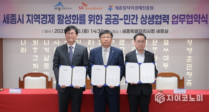 SK브로드밴드(사장 박진효)가 세종특별자치시(시장 최민호), 세종일자리경제진흥원(원장 이홍준)과 소상공인 상생협력을 위한 업무협약을 체결했다. 이번 협약은 경기침체와 소비패턴 변화로 어려움을 겪는 전통시장과 골목상권을 되살리기 위한 ‘공공-민간 동행 모델’이라는 점에서 주목된다.