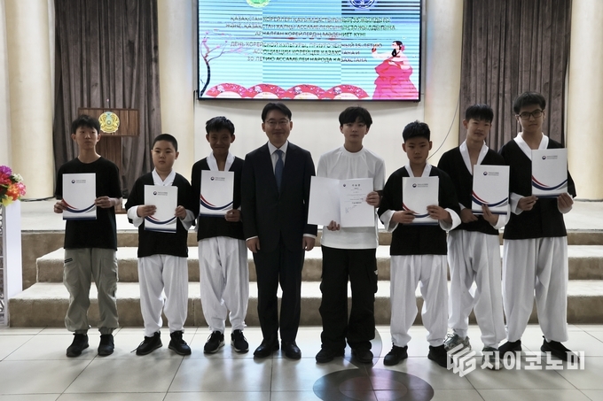 문화원은 이날 ‘국립고려극장 연계 찾아가는 마스터클래스’ 수료식도 함께 개최했다. 고려극장 전문 예술인을 지방 도시로 파견해 지역 주민들이 한국 전통예술을 배울 기회를 제공하는 프로그램으로, 타라즈 시에서는 사물놀이 7명, 전통춤 8명 등 총 15명이 과정을 마쳤다.