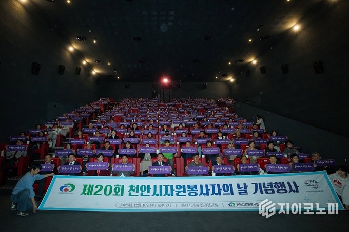지이코노미 정길종 기자 |천안시자원봉사센터는 10일 롯데시네마 천안불당점에서 ‘제20회 천안시자원봉사자의 날 기념행사’를 열고 지역사회를 위해 헌신해 온 자원봉사자들의 노고를 격려했다.