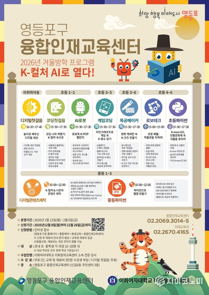 최호권 영등포구청장은 “흥미롭게 체험하며 역량을 기를 수 있는 알찬 겨울방학 프로그램을 마련했다”라며 “변화하는 환경에 맞춰 아이들의 성장을 돕는 다양한 융합 교육을 지속적으로 확대하겠다”라고 전했다.