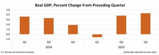 미국 3분기 성장률 지표는 10월1일 시작해 11월12일 끝난 역대 최장(43일) 연방정부 셧다운(일시적 업무정지) 여파로 발표가 지연돼왔다.