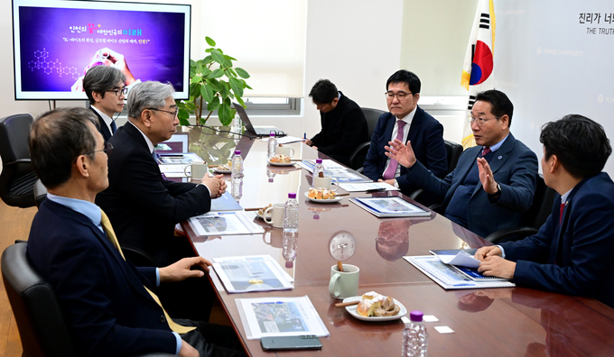 인천시가 8일 연세대학교 국제캠퍼스에서 윤동섭 연세대 총장과 면담을 갖고, 송도를 중심으로 한 세계 최고 수준의 양자-바이오·메디컬 혁신 클러스터 조성을 위한 협력 방안을 논의했다.