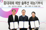 지이코노미 최영규 기자 | 금천구(구청장 유성훈)는 기업의 산업안전 역량 강화를 위해 ‘중대재해 예방 솔루션 재능기부식’을 개최했다고 밝혔다. 이번 행사는 중대재해처벌법 시행 이후 안전관리 체계 구축에 어려움을 겪는 중소기업을 지원하기 위해 마련됐다. 전문성을 갖춘 안전관리 솔루션 기업이 재능기부 방식으로 참여해, 기업의 부담을 줄이면서 실질적인 예방 역량을 높이는 데 목적이 있다. 재능기부식에는 ㈜휴디스텍과 ㈜큐브더모먼트가 참여했다. 두 기업은 일정 기간 금천구 관내 기업을 대상으로 중대재해 및 산업안전 예방 솔루션을 무상 제공하고, 안전보건 현장 교육과 컨설팅을 지원하기로 했다. ㈜휴디스텍은 중대재해·산업안전 예방 솔루션 ‘AXENT PRO’를 최대 6개월간 무료로 제공한다. 또한 안전보건 현장 교육과 컨설팅을 지원하고, 제휴사를 통해 산업안전보건교육 등 5대 법정의무교육을 무상으로 제공할 계획이다. 지원 대상은 관내 중소기업 50곳이다. ㈜큐브더모먼트는 산업안전 관리 솔루션 ‘아이 세이프티’를 최대 1년간 무상으로 제공한다. 이와 함께 안전보건 현장 교육과 컨설팅을 지원하며, 총 100개 기업을 대상으로 서비스를 제공할 예정이다. 유성훈 금천구청장은 “
