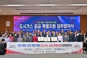 지이코노미 정길종 기자 |충남도가 오는 2027년부터 서산 해미면과 당진 정미면·채운동 558세대에 도시가스를 공급하며 도민의 에너지 복지 향상에 나선다. 김태흠 충남도지사는 13일 도청 대회의실에서 이완섭 서산시장, 오성환 당진시장, 송민섭 미래엔서해에너지 대표와 함께 ‘서산 해미, 당진 정미·채운 도시가스 공급 특별지원 업무협약’을 체결했다. 이번 사업은 도시가스 보급 사각지대에 놓였던 주민들의 지속적인 요청에 따른 것으로 공급 대상은 ▲서산 해미면 350세대 ▲당진 정미면 126세대 ▲당진 채운동 82세대 등 총 558세대다. 총 사업비는 91억 5000만 원으로, 도비와 시비, 서해에너지 부담금이 함께 투입된다. 협약에 따라 충남도와 서산시·당진시는 도시가스 배관 설치를 위한 특별지원금 확보 및 행정 지원에 나서고, 미래엔서해에너지는 2027년까지 배관 공사를 완료할 계획이다. 구체적으로 해미 지역은 2년간 63억 9000만 원을 투입해 12.54㎞의 배관을 구축한다. 내년에는 △순교성지∼조산리 마을회관 △해미중학교∼반양리 관터 등 2개 구간을 우선 시공하고, 2027년 동암리 마을회관 일대까지 연결해 공급을 시작한다. 정미 지역은 내년 한 해 동안