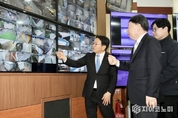 ▲강기정 광주광역시장이 19일 ㈜해양에너지 종합상황실을 방문해 도시철도2호선 공사장 등 도시가스 관제 상황을 살펴보고 있다. 광주광역시 제공