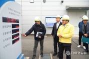 ▲강기정 광주광역시장이 19일 ㈜해양에너지를 방문해 ‘광주광산 연료전지 발전설비’를 살펴보고 있다. 광주광역시 제공