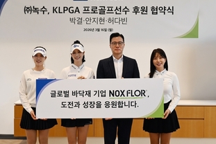 지이코노미 김대진 기자 | 글로벌 럭셔리 바닥재 기업 ㈜녹수(대표 고동환)는 지난 16일, KLPGA 무대에서 활약 중인 박결, 안지현, 허다빈 선수와 공식 후원 계약을 체결했다고 밝혔다. 세 선수는 앞으로 녹수 로고를 부착하고 각종 대회와 활동을 통해 녹수 브랜드를 알릴 예정이다. 녹수는 60년 이상 축적된 바닥공학 노하우와 신소재 기술력을 바탕으로 전 세계 50여 개국에서 품질과 기술력을 인정받고 있는 프리미엄 바닥재 기업이다. 녹수는 지속적인 기술 혁신과 안정적인 품질을 통해 글로벌 LVT 바닥재 시장에서 경쟁력을 인정받고 있으며, 장기적인 성능과 지속가능한 소재 기술로 고객과 파트너에게 신뢰를 쌓아왔다. 녹수는 이번 선수 후원에서 단기적인 화제성보다 선수들이 오랜 시간 이어온 꾸준한 노력과 성장 과정에 주목했다. 오랜 시간 기술 혁신과 품질 경쟁력을 축적하며 고객사와 오랜 파트너십을 이어온 녹수의 기업 철학과, 끊임없는 훈련과 도전 속에서 성과를 만들어가는 선수들의 여정은 서로 닮아 있기 때문이다. 프레인스포츠 소속 박결(두산건설)은 KLPGA에서 10년 이상 꾸준하게 정규투어 활동을 이어온 ‘K-10 클럽’ 멤버로, 검증된 안정적인 기량으로 팬들의