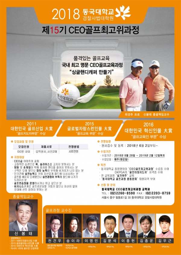 [골프가이드 스포츠팀] 동국대 사법경찰대학원은 CEO 골프 최고위과정 제15기 원우를 모집한다.