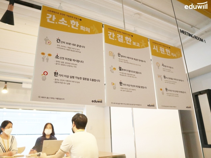 에듀윌 관계자는 “임직원들이 집중해 일하고, 집중해 휴식을 취할 수 있도록 다양한 캠페인을 진행하고 있다”고 말하며 “기업문화와 조직 규범 등에 대한 가이드 라인도 함께 제시하고 있다”고 말했다.