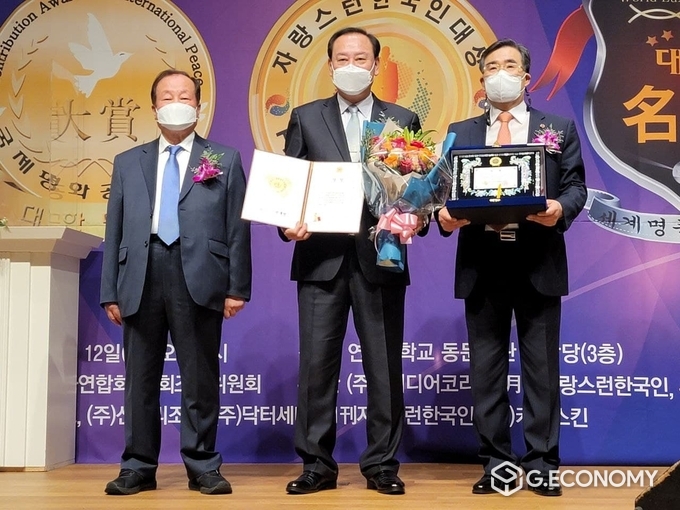 유동균 마포구청장이 12일 연세대학교 동문회관에서 열린 ‘2021 자랑스런한국인 인물대상’에서 ‘행정발전 공헌 대상’을 수상했다. 유 구청장은 ‘MH마포하우징’을 통해 갑작스러운 위기로 갈 곳을 잃은 구민에게 임시거소와 공공임대주택을 지원해준 데 대한 공로를 인정받았다.