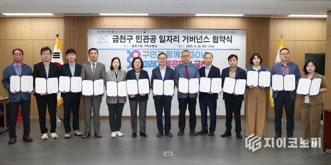 지이코노미 최영규 기자 | 금천구(구청장 유성훈)는 지역 내 일자리 창출 활성화를 위해 금천구 민관공 일자리 거버넌스를 구성하고, 30일 참여기관들이 모여 업무협약식을 개최했다고 밝혔다.