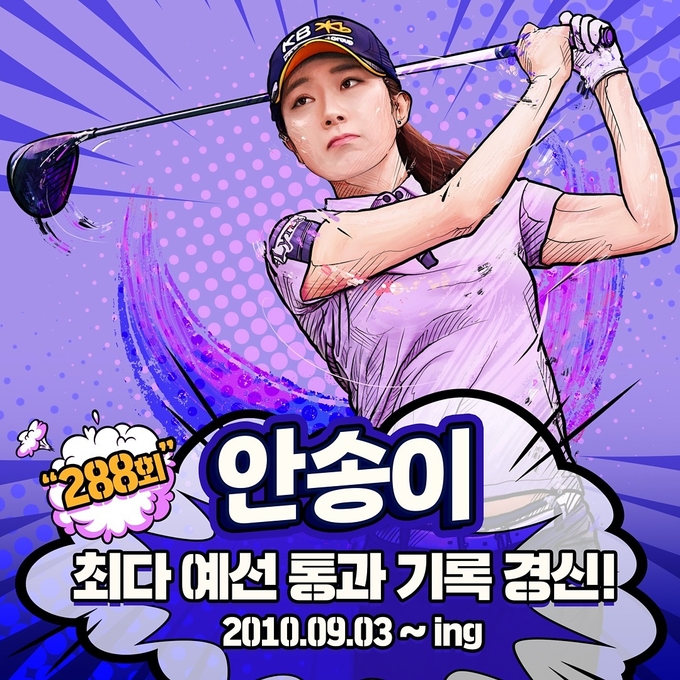 2010년 정규투어에 데뷔해 올해로 16년 차인 안송이는 꾸준함의 상징이다. 지난해 11월 에쓰오일 챔피언십에서 최다 출전 신기록(360회)을 달성한 뒤 매 대회 자신의 기록을 경신하고 있다. 이번 대회가 385번째로 내년 400개 대회 출전 달성을 눈앞에 두고 있다. 서른다섯의 안송이는 KLPGA투어를 뛰고 있는 선수 중 안선주(38)에 이어 두 번째로 나이가 많다.