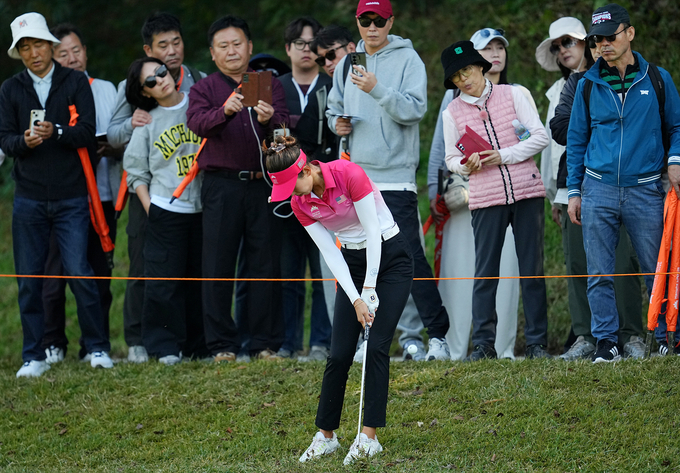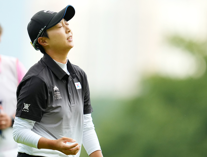 김효주가 칩인 버디를 놓치고 실망하고 있다
