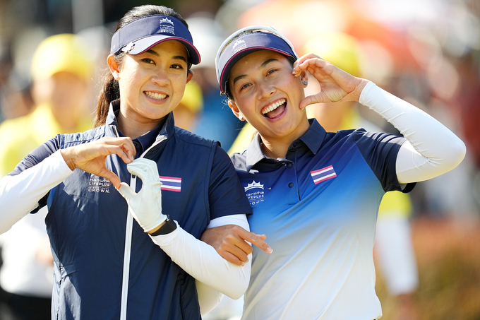 태국팀의 지노 티띠꾼과 파자리 아난나루칸이이 4번 홀을 출발하며 포즈를 취하고 있다